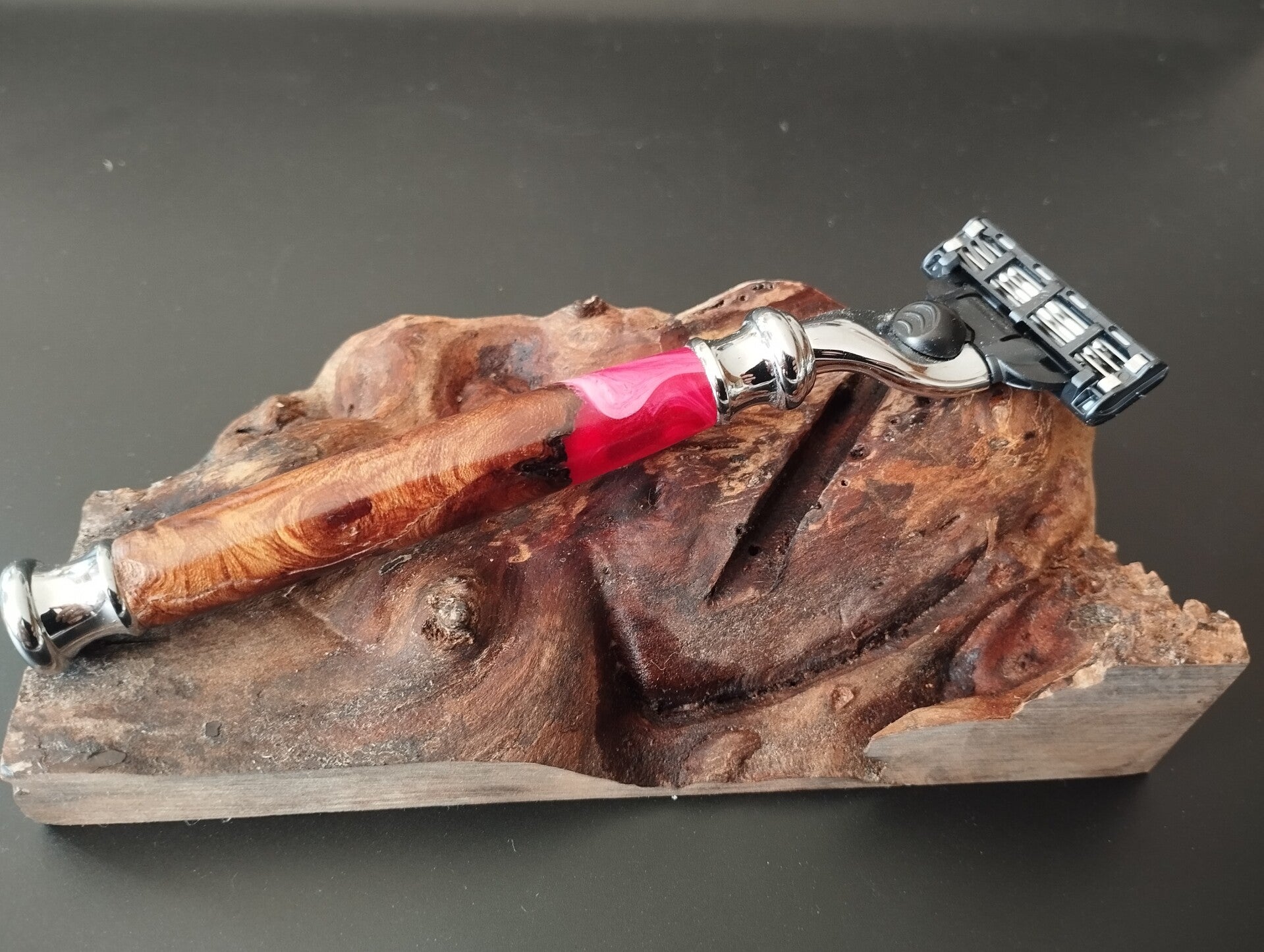 Rasoir Mach3 en loupe d'orme et résine rouge