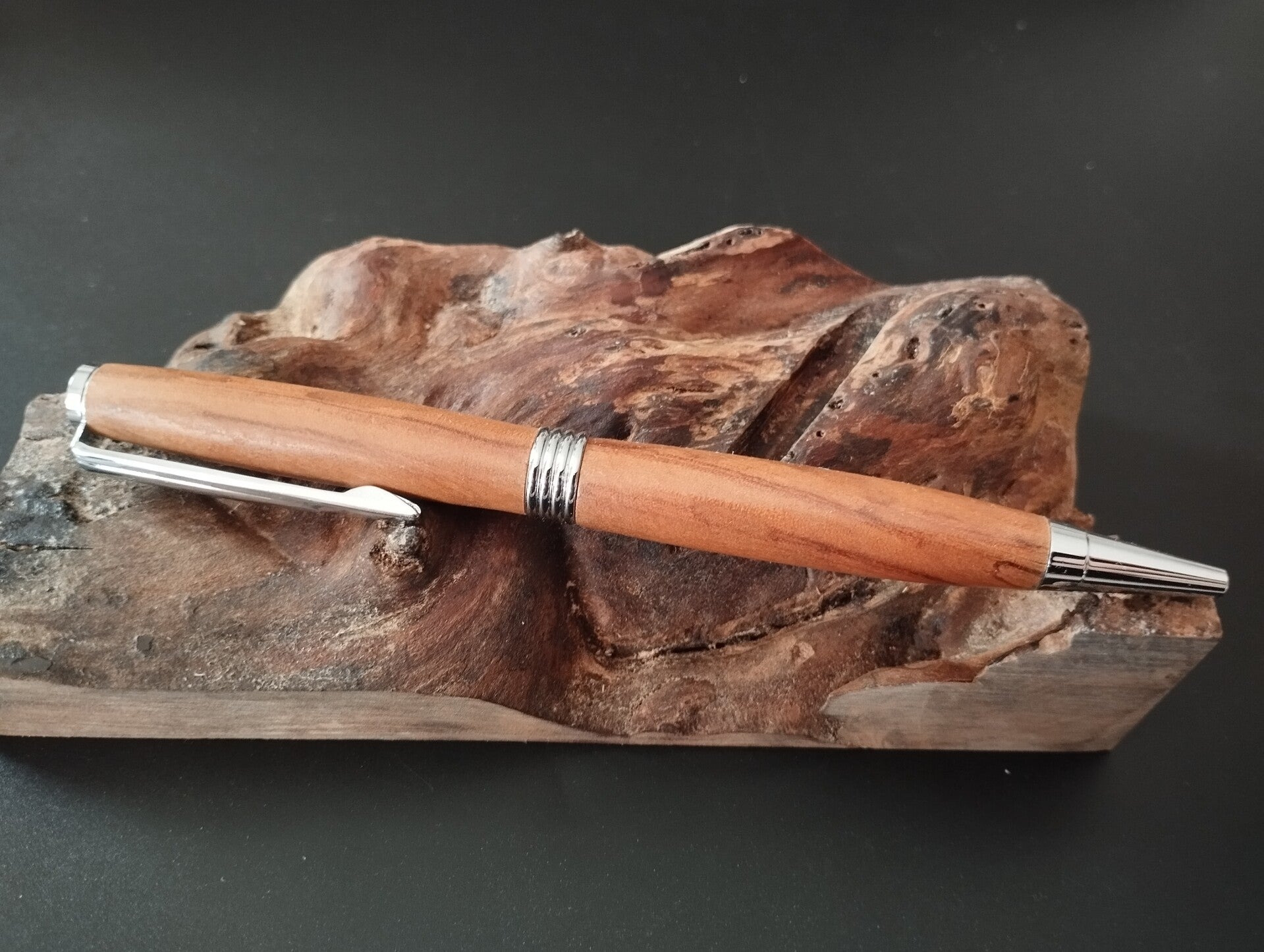 Ce stylo bille Slimline en Bois decerisier est unique et monté sur un mécanisme Chromé Brillant.