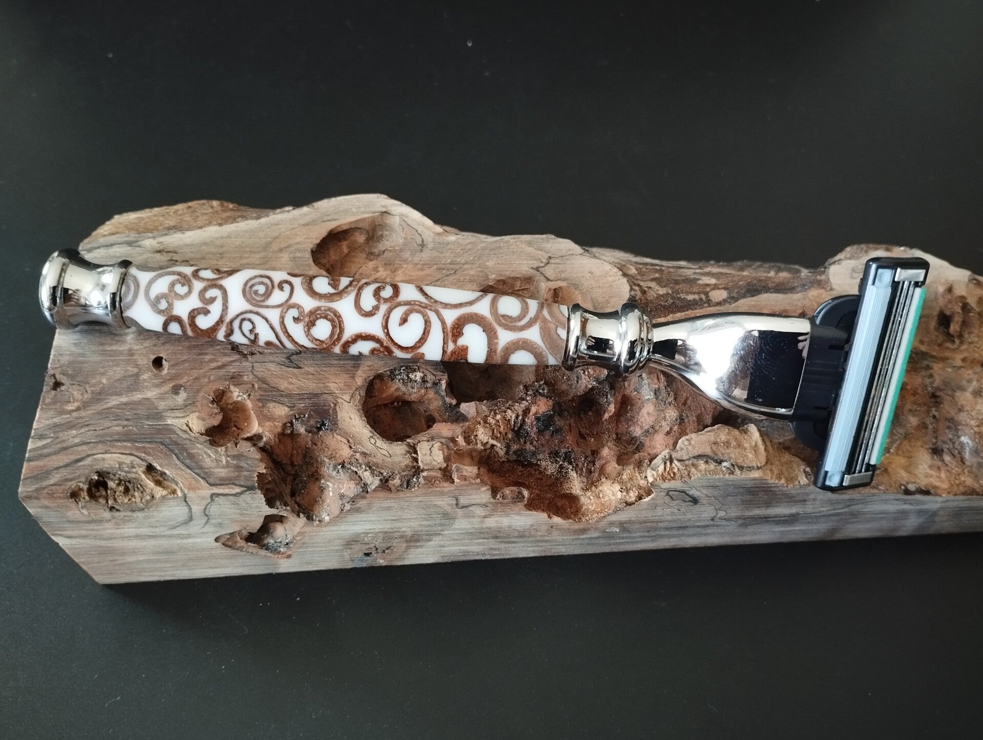 Rasoir Mach3 en cannelle et Résine Blanche