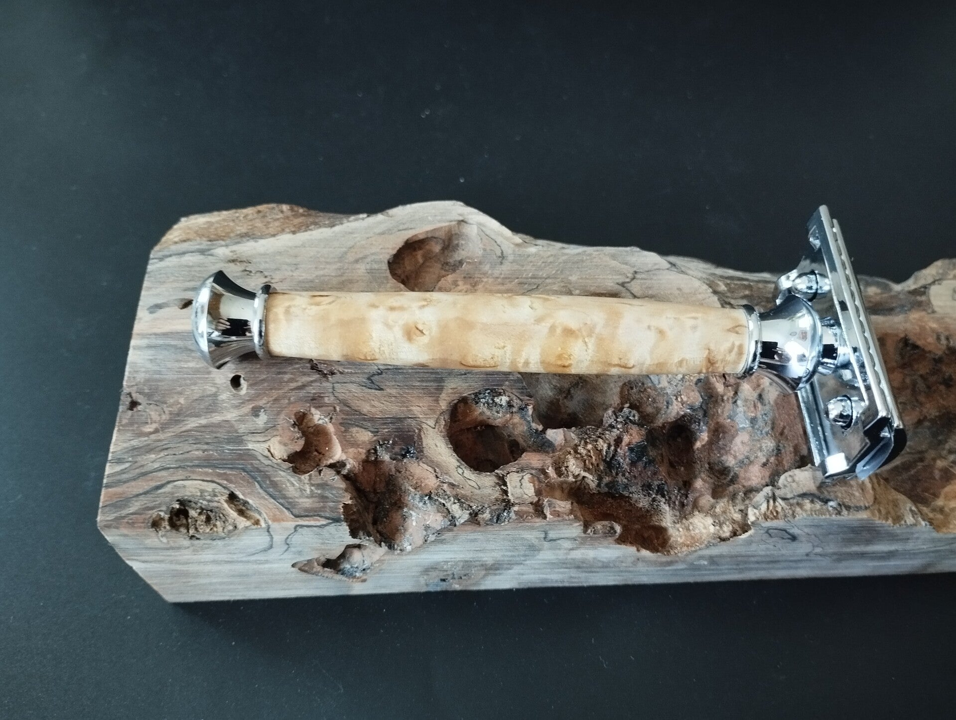 Découvrez le rasoir en Érable Échauffé, un accessoire chic et pratique qui allie style et fonctionnalité.