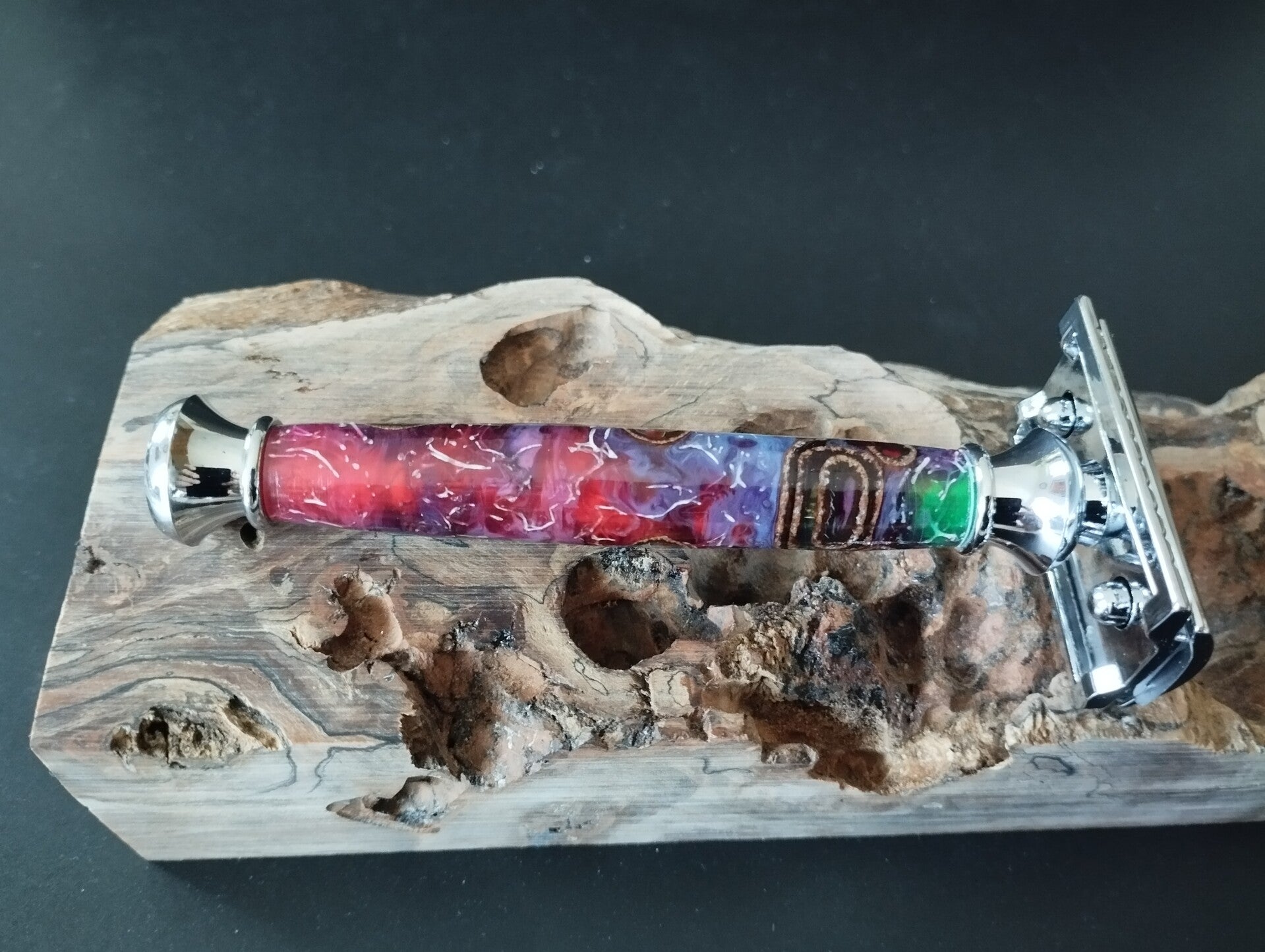 Découvrez le rasoir en Loofah / Cannelle et Résine Rouge, un accessoire chic et pratique qui allie style et fonctionnalité.