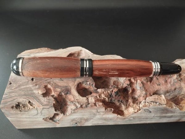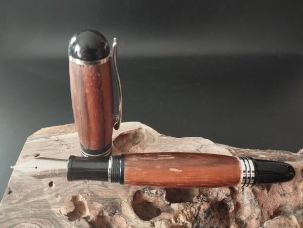 Ce stylo plume en bois de noyer est unique et monté sur un mécanisme Churchill chromé brillant.