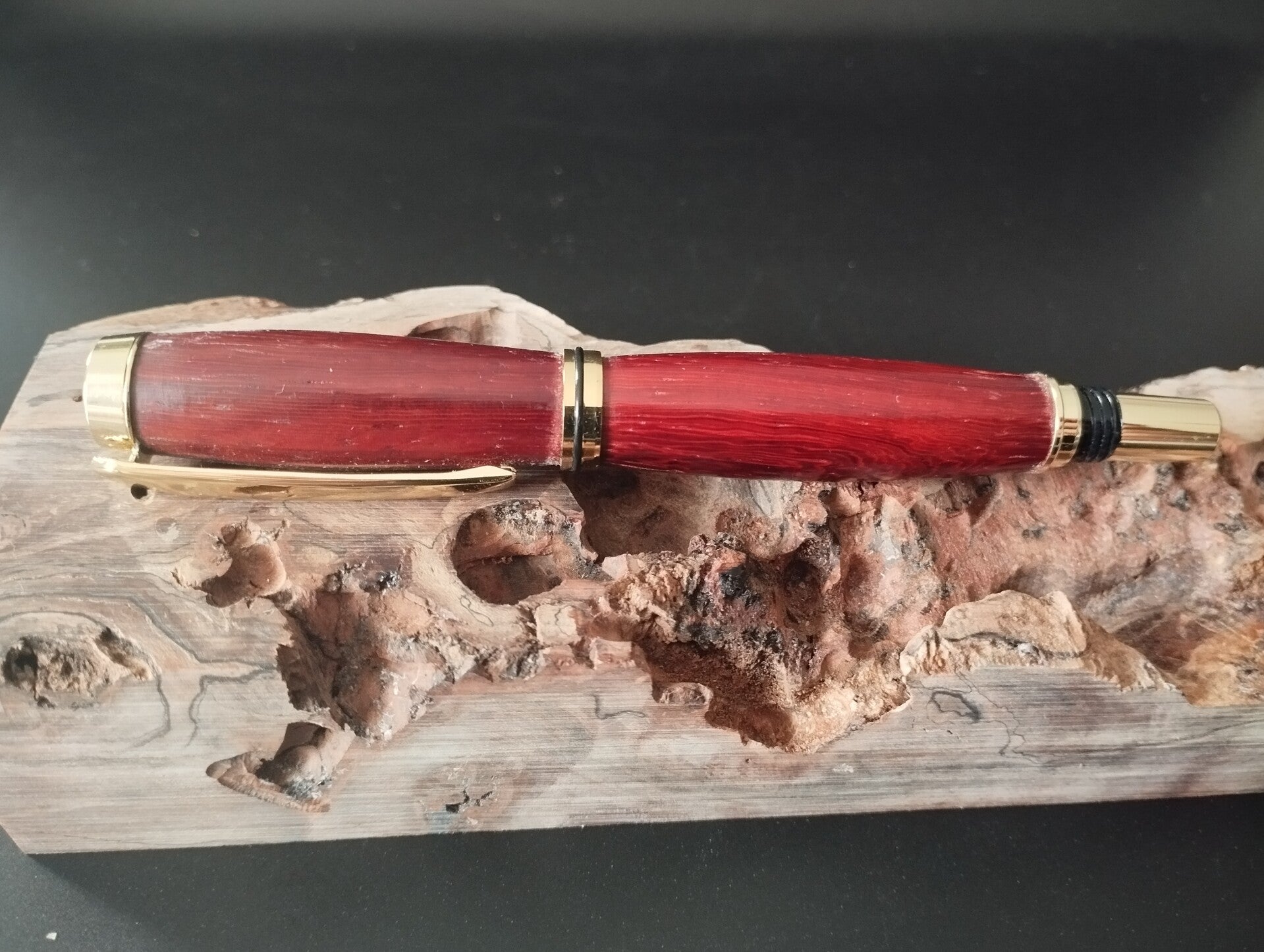 Ce stylo roller Gentleman en padouk est unique et monté sur un mécanisme or brillant.